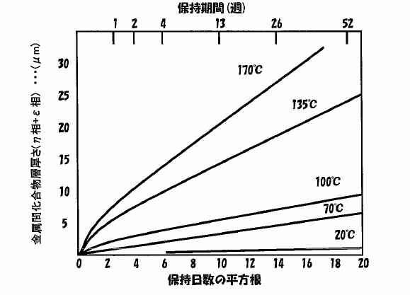 52週(1年)で5ミクロンも合金層が成長してしまいます。