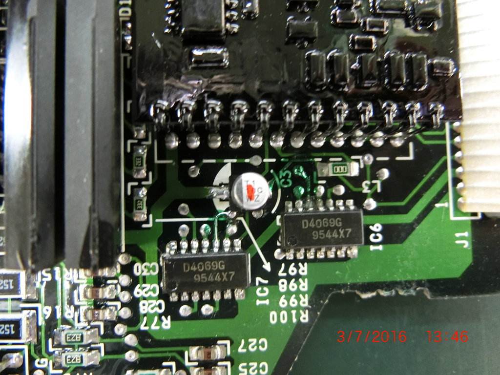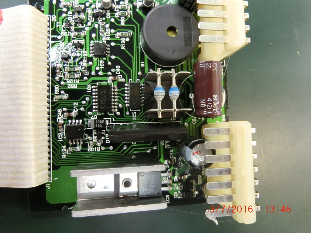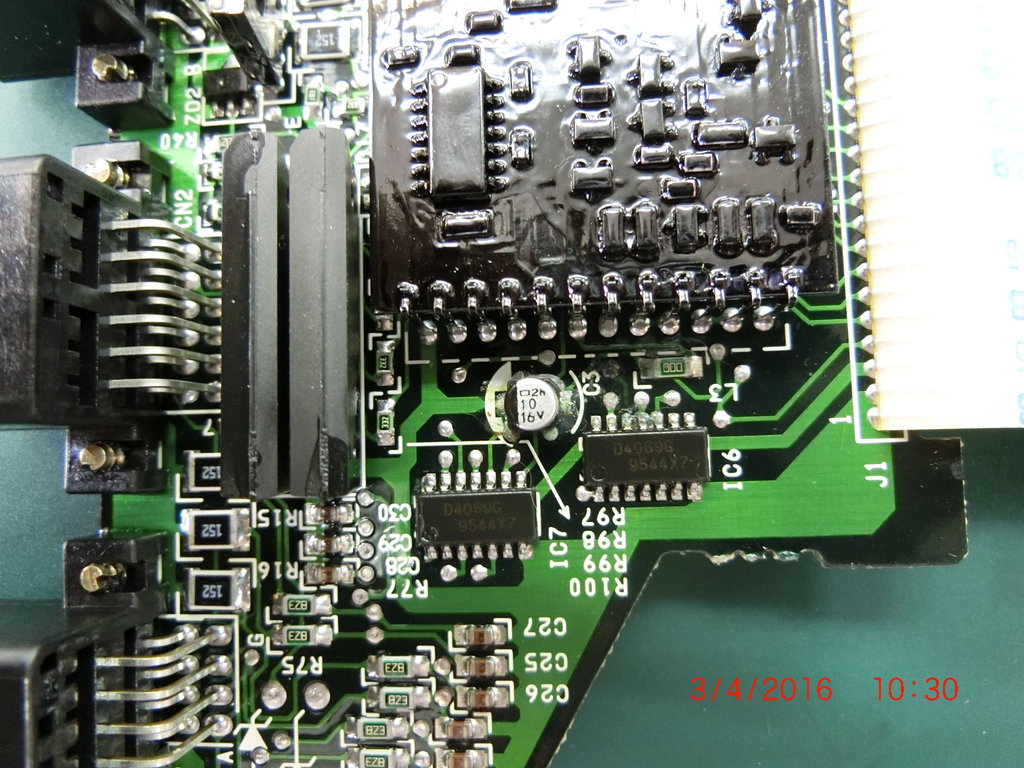 コンデンサ左側にはんだが妙に目立っている箇所がお分かりいただけるでしょうか。