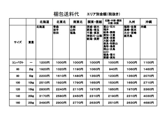 箱のサイズや送り先の都道府県によって変わります。梱包送料代